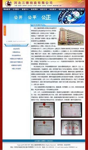 河北三锤拍卖有限公司是经河北省商务厅审核批准设立的注册资金为100万元人民币的有限责任公司。公司成立以来以“诚信第一,信誉至上”为服务准则,坚持“公开、公平、公正、诚实信用”的原则,建立起一整套严格规范的现代企业管理制度。
